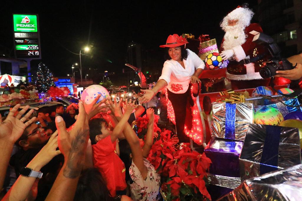 En una caravana, recorre la alcaldesa algunas zonas de la ciudad y regala juguetes a niñas y niños
