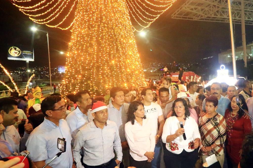 Acapulco, Gro., 07 de diciembre de 2022.- Llevando la alegría de estas fechas a los más pequeños, la presidenta municipal de Acapulco, Abelina López Rodríguez, encabezó el encendido del árbol navideño en Pie de la Cuesta y en la avenida costera Miguel Alemán, así como una caravana que recorrió distintos puntos de la ciudad.