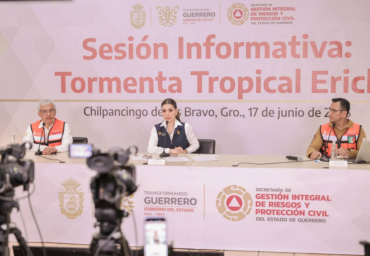 Dijo que Guerrero está listo para enfrentar cualquier eventualidad con responsabilidad, unidad y coordinación, priorizando la protección de los guerrerenses, afirmó la gobernadora acompañada por el secretario de Gestión Integral de Riesgos y Protección Civil, Roberto Arroyo Matus y en meteorólogo, Fermín Damián Adame.