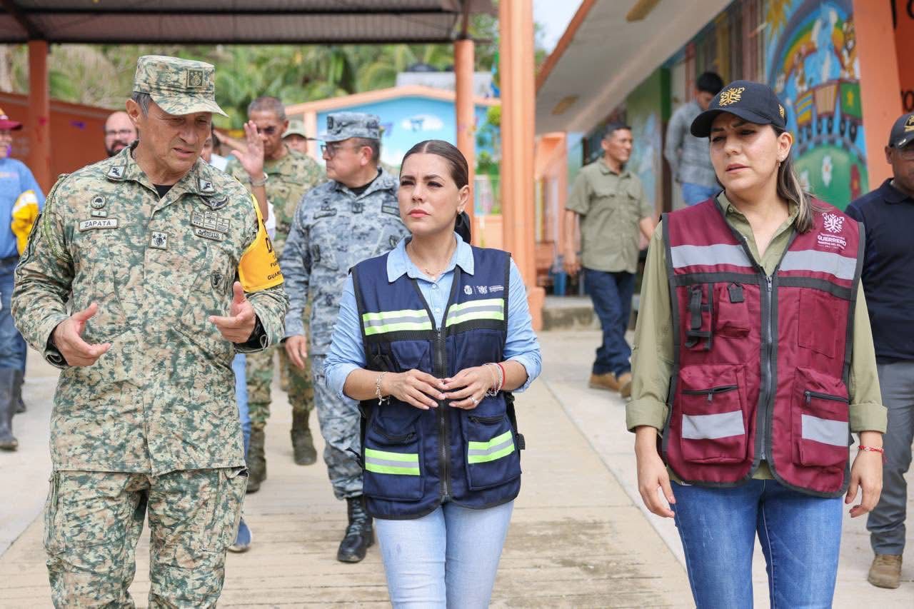 Punta Maldonado, Mpio. de San Nicolás, Gro., 20 de junio de 2025.- “Nos vamos a levantar, como ese pueblo guerrero que somos”, expresó la gobernadora Evelyn Salgado Pineda, durante su visita el refugio temporal instalado en la primaria Venustiano Carranza, en Punta Maldonado, municipio de San Nicolás, en donde en compañía de secretarios de despacho, subsecretarios y parte de la estructura gubernamental, supervisó las acciones que se realizan en favor de la población que resultó afectada por el huracán Erick en la región Costa Chica.