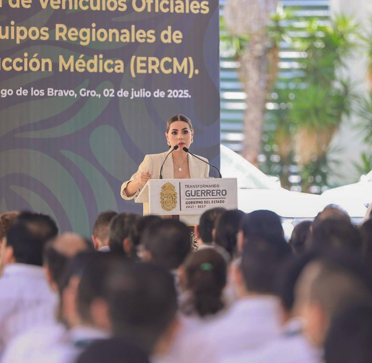 Chilpancingo, Gro., 2 de julio de 2025. – Para fortalecer el modelo de atención a la salud IMSS-Bienestar en Guerrero, la gobernadora Evelyn Salgado Pineda encabezó la entrega de 18 vehículos oficiales a los Equipos Regionales de Conducción Médica (ERCM), con el objetivo de garantizar el acceso a los servicios de salud en todos los rincones del estado.