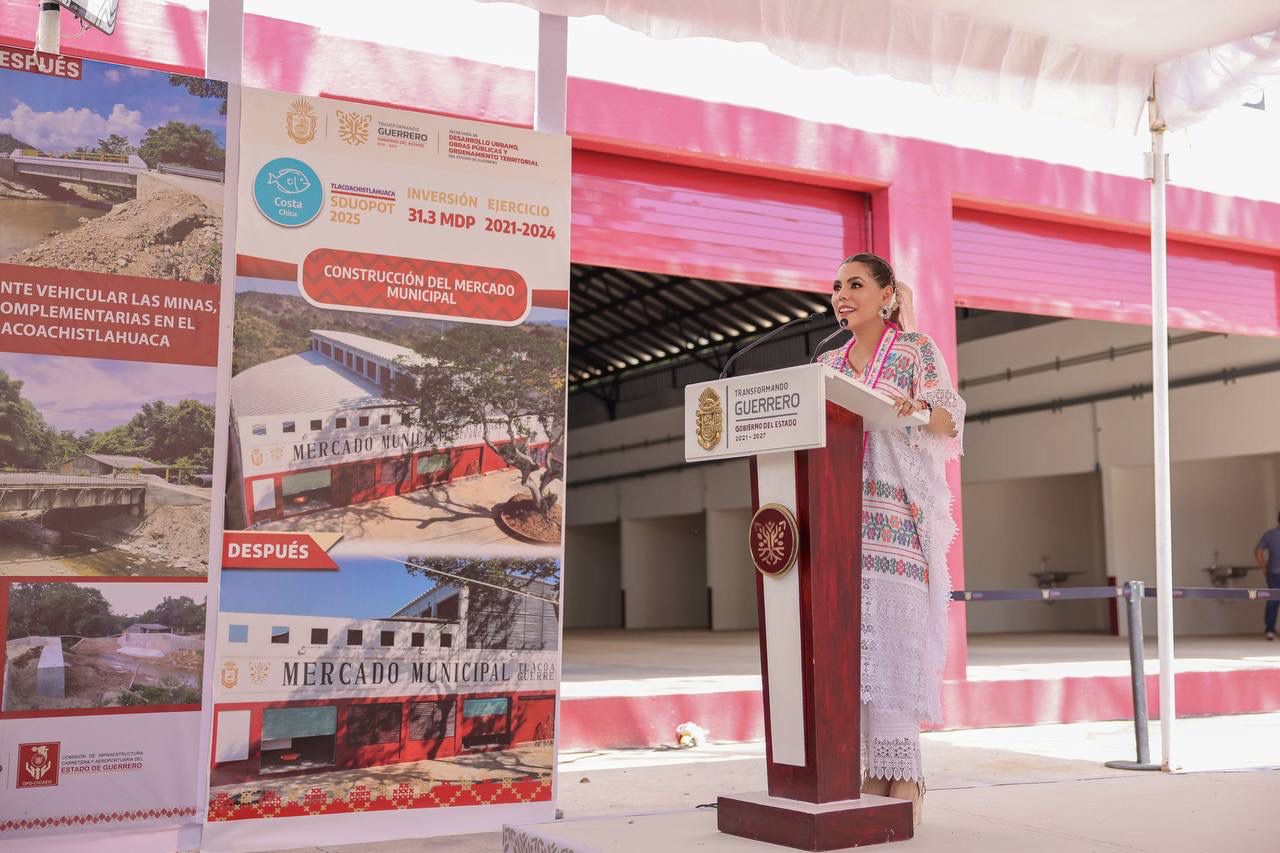 Durante la inauguración del mercado municipal de Tlacoachistlahuaca, Evelyn Salgado destacó que esta entrega representa un compromiso cumplido a una petición hecha en el 2023, con más de mil 500 metros cuadrados, el mercado se entrega totalmente nuevo y equipado con instalación eléctrica y de drenaje sanitario, cuenta con 40 locales comerciales, áreas administrativas, zonas de carga y descarga, zona de comida, sanitarios, cisterna, zona de recolección de basura y estacionamiento.