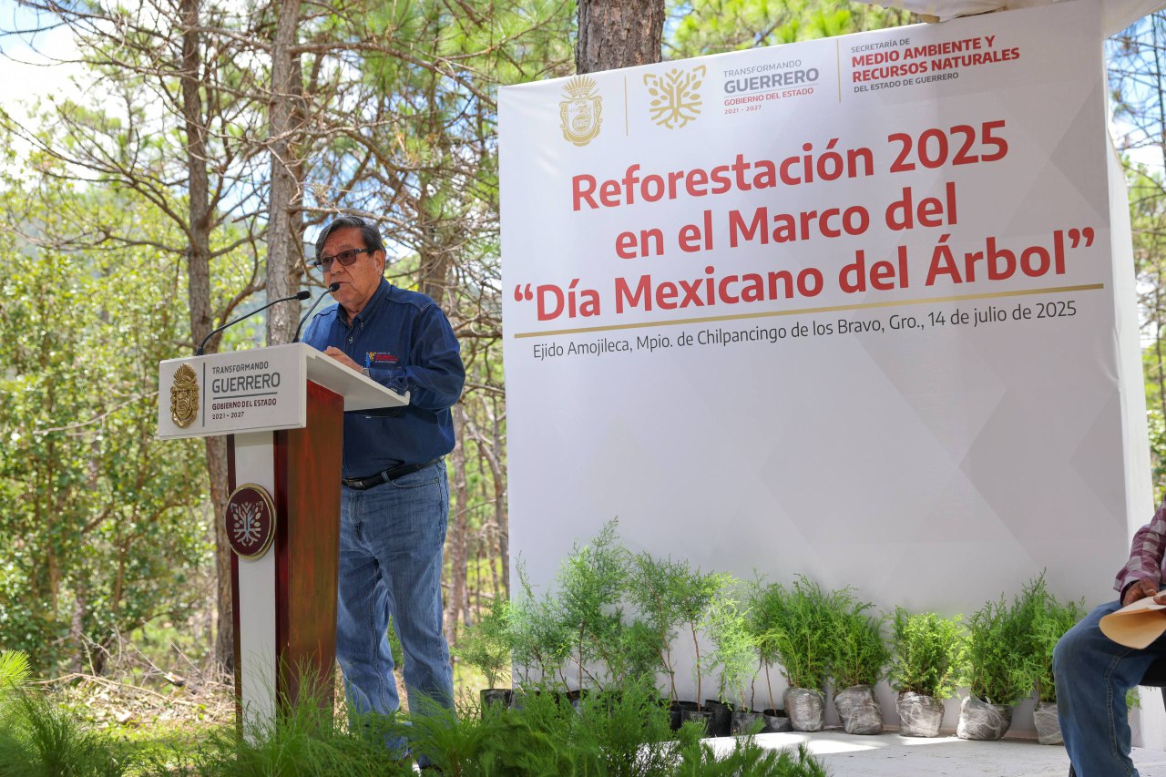 Chilpancingo, Gro., 14 de julio de 2025.– En el marco del Día Mexicano del Árbol, la gobernadora Evelyn Salgado Pineda encabezó la Jornada de Reforestación 2025 en el ejido de Amojileca, que tendrá una meta para plantar más de 15 mil árboles, principalmente de cedro blanco y dos especies de pino, con el objetivo de restaurar las áreas afectadas por los incendios forestales.