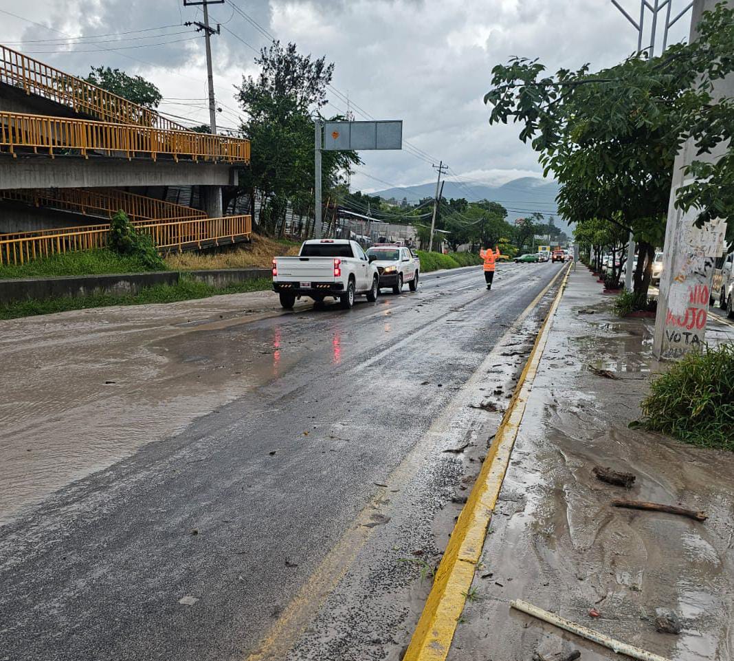 *Ante la lluvia registrada la tarde de este sábado a fin de evitar encharcamientos que obstruyan el paso vehicular