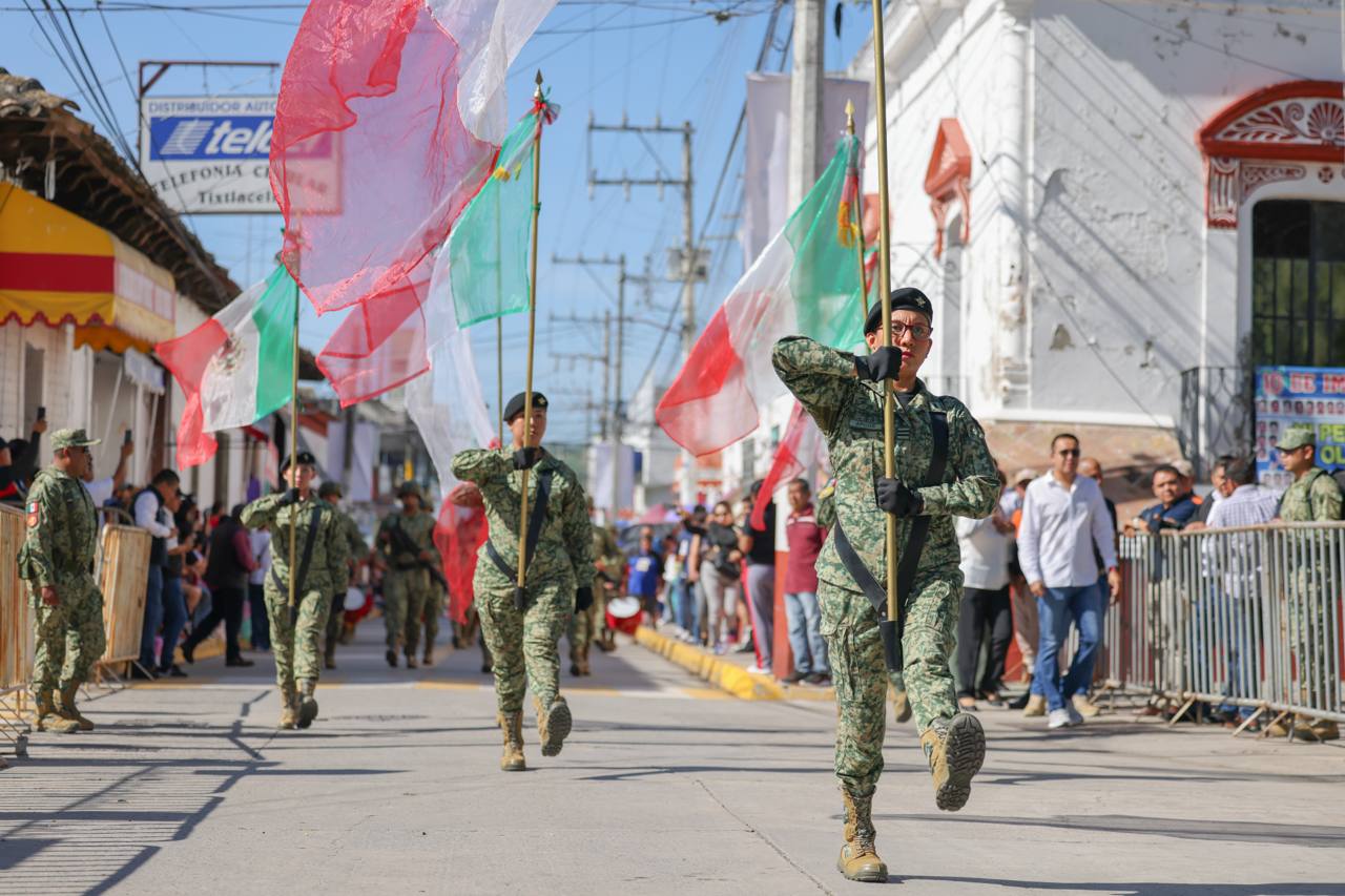 Con paso firme, banderas ondeantes y la música marcial de las marchas, el desfile fue encabezado por elementos de las Fuerzas Armadas Mexicanas, vehículos militares, cuerpos de seguridad, instituciones educativas, danzantes tradicionales y representantes de diversas dependencias públicas.