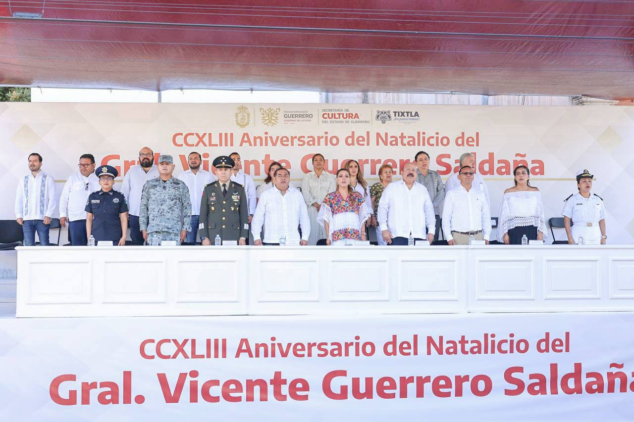 “Hoy conmemoramos 243 años del natalicio de un hombre que no solo forma parte de nuestra historia, sino que es raíz viva de nuestra identidad”, expresó en su mensaje oficial, luego de realizar una guardia de honor en el monumento del General Vicente Guerrero Saldaña en la plaza principal de este municipio.
