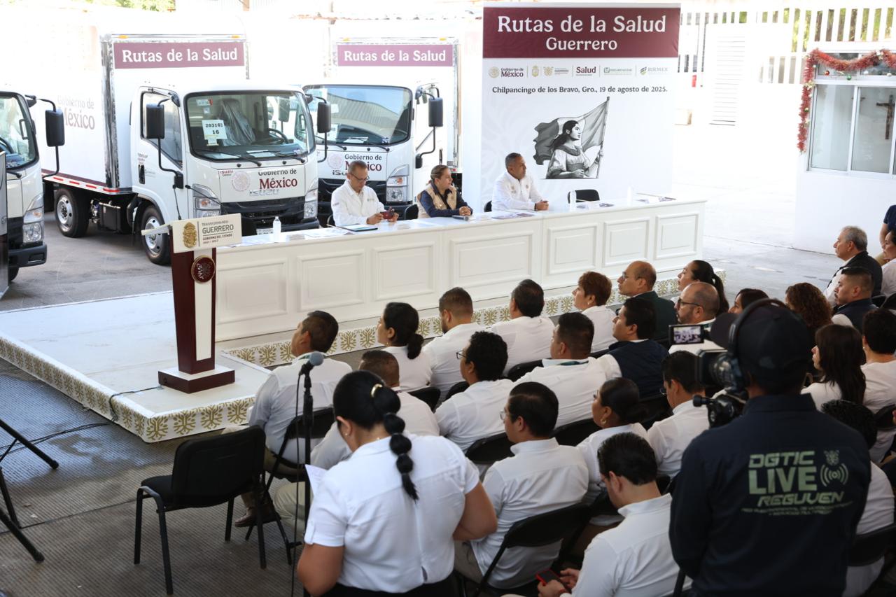 Chilpancingo, Gro., 19 de agosto de 2025.- Guerrero se integra a la estrategia federal “Rutas de la Salud”, puesta en marcha desde Palacio Nacional por la presidenta Claudia Sheinbaum Pardo, con el objetivo de garantizar el abasto y acceso gratuito a medicamentos en 928 unidades médicas del IMSS Bienestar y fortalecer el primer nivel de atención médica en la entidad.