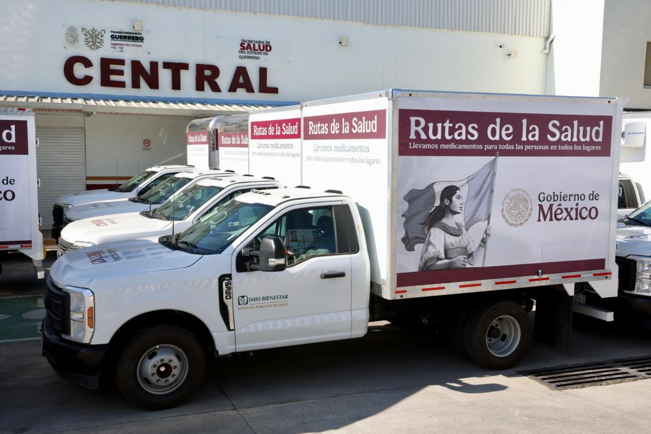 En Guerrero, el programa se pone operación con más de 26 vehículos destinados a abastecer 928 unidades médicas del IMSS Bienestar, mediante kits que contienen 147 claves de medicamentos esenciales para la atención primaria.
