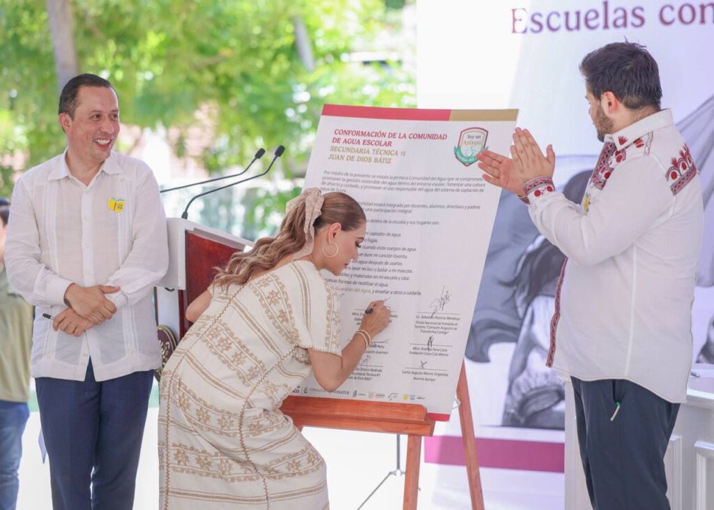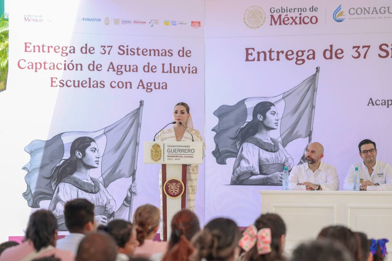 “Este programa sin duda, fortalece a nuestras comunidades escolares y pone al bienestar de la niñez en el foco de todas las prioridades que tenemos, por todo lo que significa, porque una escuela con agua, es una escuela donde se aprende mejor y donde se construyen mejores oportunidades para las próximas generaciones”, expresó la gobernadora.En el evento realizado en la Secundaria Técnica No. 1 Juan de Dios Bátiz en Acapulco, la jefa del Ejecutivo estatal, agradeció la colaboración de la iniciativa privada en este tipo de programas, que en coordinación con la Comisión Nacional del Agua (Conagua), la Secretaría de Educación Guerrero (SEG) y los gobiernos municipales, contribuyen a la creación de más y mejores oportunidades para las próximas generaciones, en un entorno adecuado.