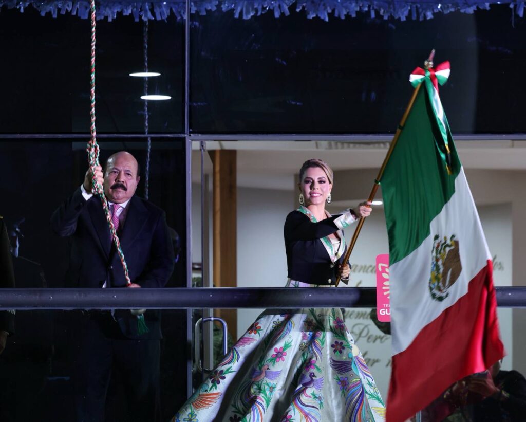 Desde el balcón central del Palacio de Gobierno, acompañada por mandos militares y navales, así como de los representantes del Poder Judicial y Legislativo, además del alcalde de Chilpancingo, Gustavo Alarcón Herrera, la mandataria estatal encabezó la tradicional ceremonia del Grito de Independencia, en un ambiente emotivo de patriotismo y libertad.