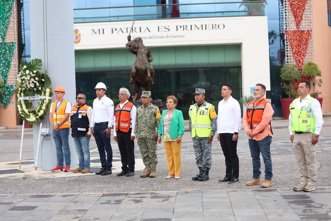 Chilpancingo, Gro., 19 de septiembre de 2025.- El gobierno del estado a través de la Secretaría de Gestión Integral de Riesgos y Protección Civil, este viernes llevó a cabo la ceremonia de izamiento de bandera a media asta, en memoria de las víctimas de los sismos de 1985 y 2017, acto que fue encabezado por la encargada de despacho de la Secretaría General de Gobierno, Anacleta López Vega, en representación de la gobernadora, Evelyn Salgado Pineda.