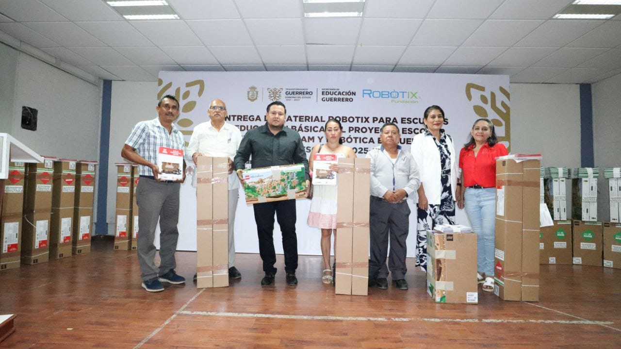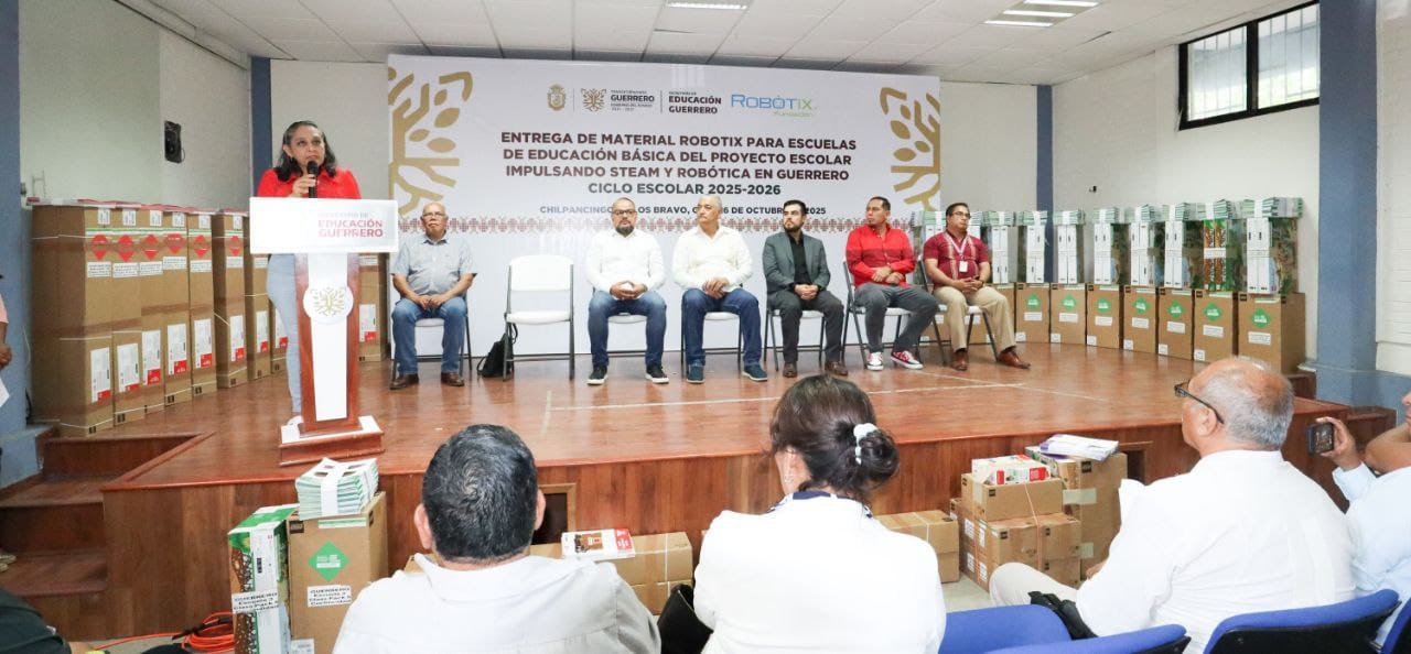 Chilpancingo, Gro., 16 de octubre de 2025.- Para continuar apoyando al sector escolar y educativo del estado, la administración que encabeza la gobernadora Evelyn Salgado Pineda, a través de la Secretaría de Educación Guerrero, junto al representante de la Fundación “RobotiX”, entregaron materiales y equipo de robótica a 27 escuelas de las regiones Costa Grande, Chica, Norte y Centro que beneficiará a 5 mil 643 estudiantes y 434 maestros, con lo cual se espera se cumplan diversas funciones escolares que vienen a beneficiar su preparación académica.