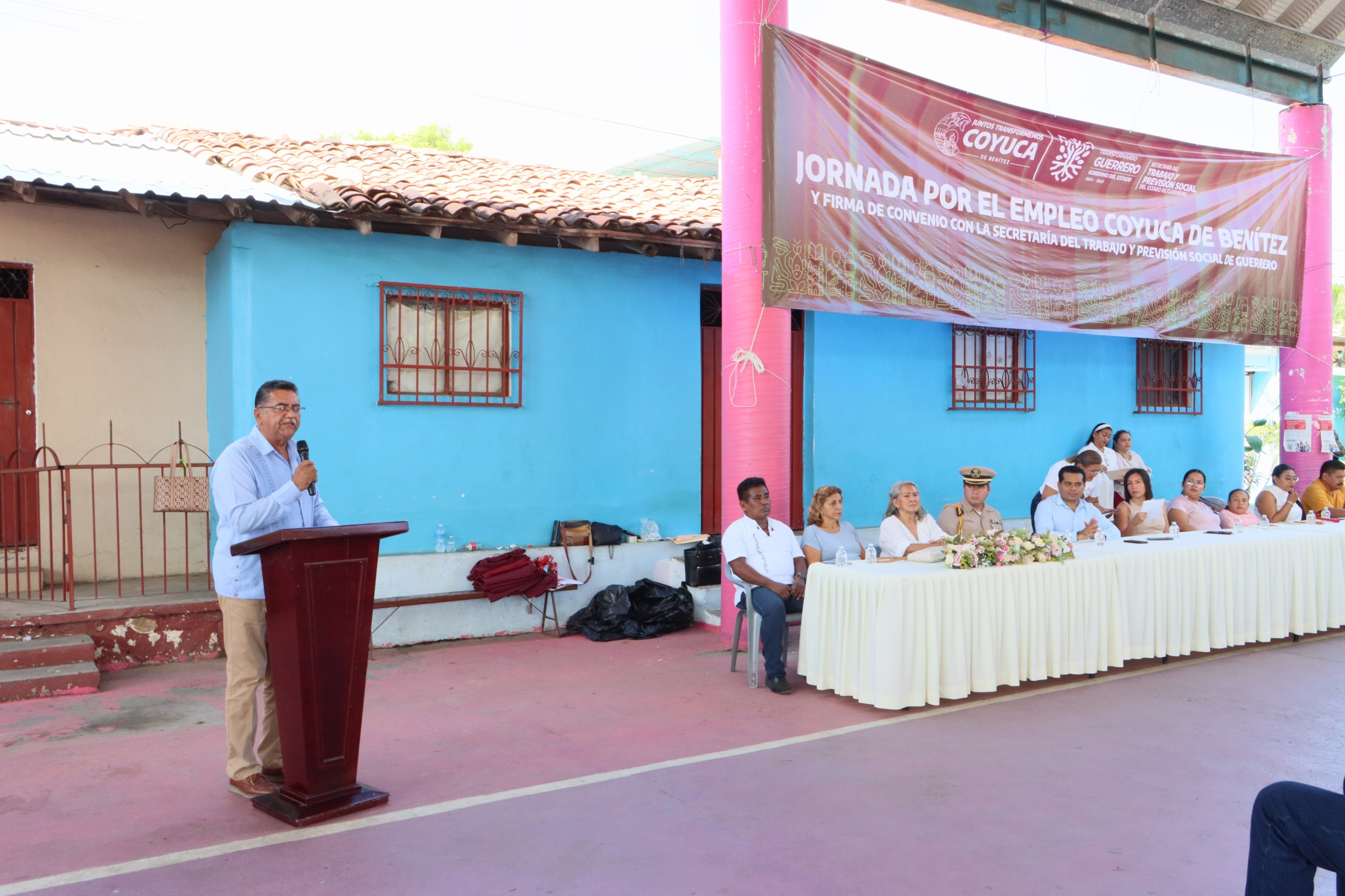 A la par de la Jornada por el Empleo, se firmó un convenio de colaboración con el Ayuntamiento de Coyuca de Benítez, encabezado por Víctor Hugo Catalán Díaz, con el cual se busca generar políticas públicas que fomenten oportunidades de empleo para todos los habitantes de la región.
