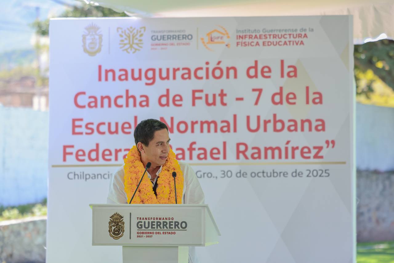 Chilpancingo, Gro., 30 de octubre de 2025.– «Lo mejor que podemos hacer es invertir en educación, es el único camino que existe para la paz, el desarrollo y el bienestar de Guerrero», afirmó la gobernadora Evelyn Salgado Pineda al inaugurar la cancha de Fut – 7 de la Escuela Normal Urbana «Rafael Ramírez», donde destacó que se han destinado más de 422 millones de pesos, solo en la región Centro en lo que va de la administración, beneficiando a más de 32 mil estudiantes, fortaleciendo los espacios educativos y la calidad del aprendizaje.