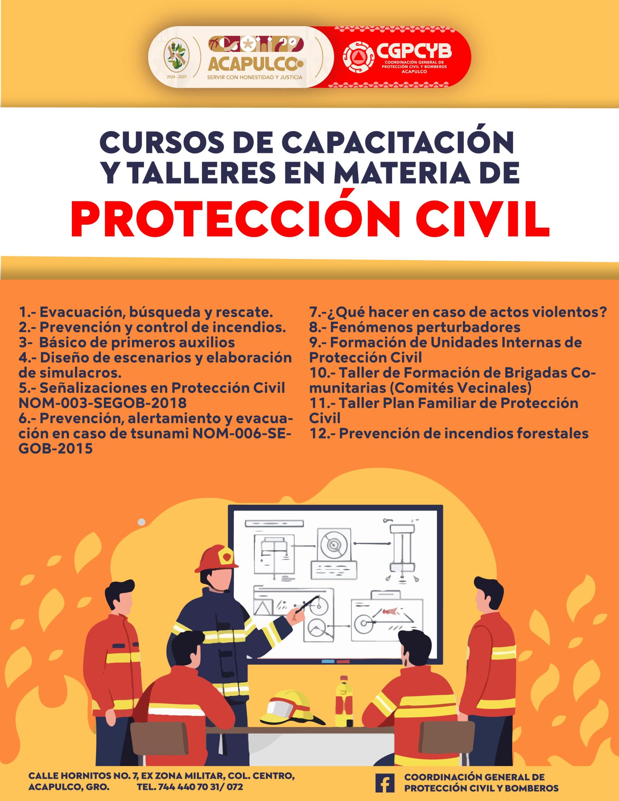 Acapulco, Gro., 12 de noviembre de 2025.- Con el propósito de fortalecer la cultura de la prevención y promover la autoprotección ante emergencias, el Gobierno Municipal de Acapulco, a través de la Coordinación General de Protección Civil y Bomberos, ofrece cursos de formación dirigidos a instituciones educativas, empresas y comités vecinales.