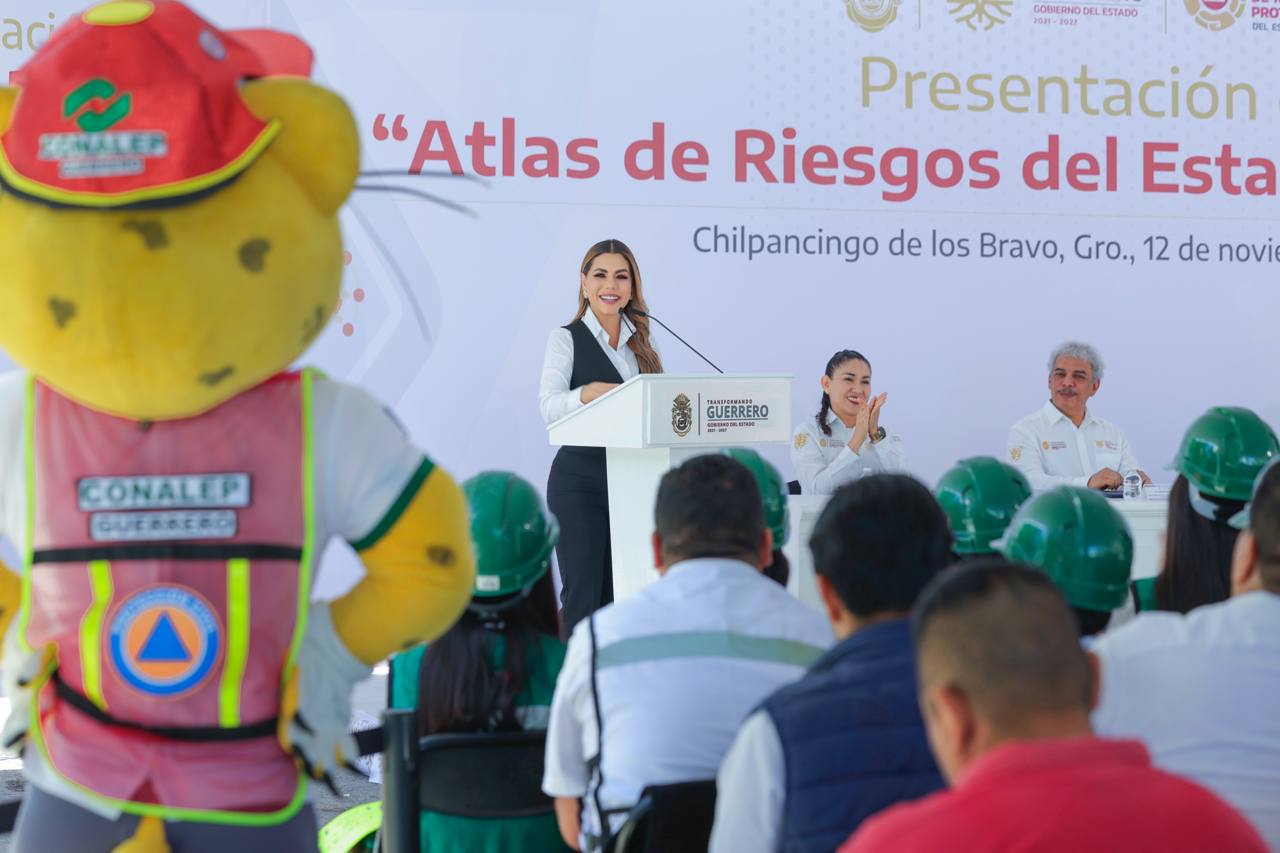 Chilpancingo, Gro., 12 de noviembre de 2025.- La gobernadora Evelyn Salgado Pineda presentó el Atlas Estatal de Riesgos y el Sistema de Alerta Temprana Meteorológica, herramientas desarrolladas con tecnología de vanguardia y rigor científico que posicionan al estado como un referente nacional en gestión de riesgos.