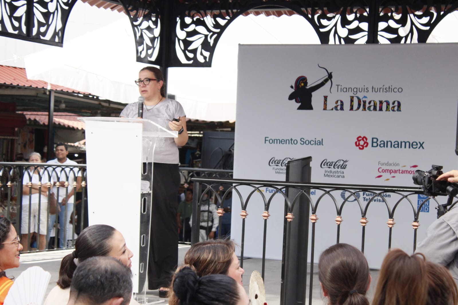 En su mensaje, destacó “Hoy podemos afirmar con orgullo que casi el 100% de estas unidades económicas ha recuperado sus inventarios, su capacidad de venta y sus ingresos y que el hoy renombrado Tianguis Turístico La Diana, es un espacio de trabajo de las y los locatarios que preservan nuestras tradiciones”.