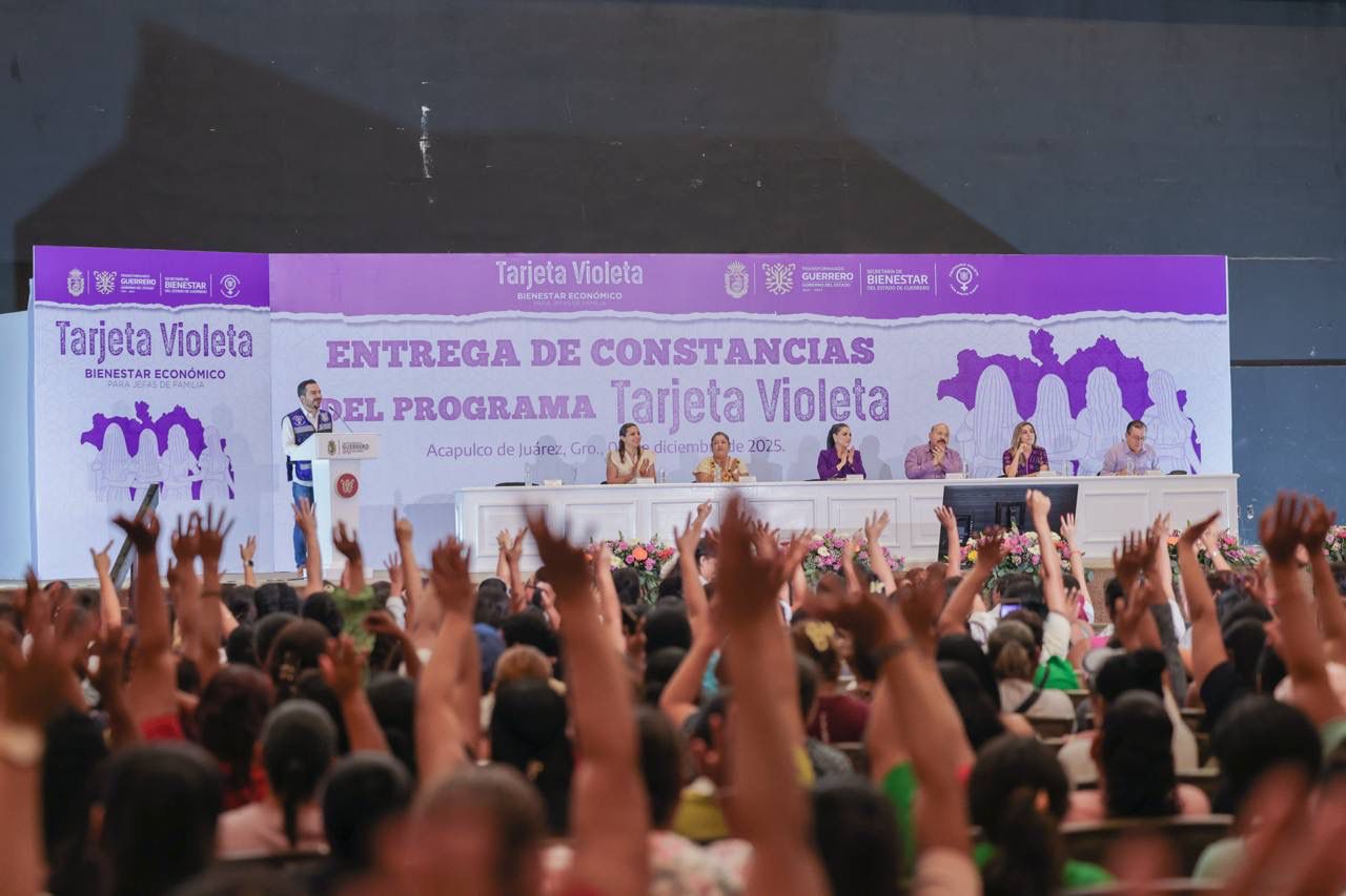 Acapulco, Gro., 8 de diciembre de 2025.- «Detrás de cada número está la historia de una mujer que decidió cambiar su vida; son mujeres que hoy dominan oficios que antes se creían que nada más eran para los hombres, mujeres que se prepararon para ser emprendedoras, mujeres que se prepararon para trabajar, para sostener a sus familias con independencia, con inteligencia, con libertad, mujeres que decidieron abrir sus alas», señaló la gobernadora Evelyn Salgado Pineda ante poco más de 4 mil mujeres que recibieron su constancia del programa Tarjeta Violeta.