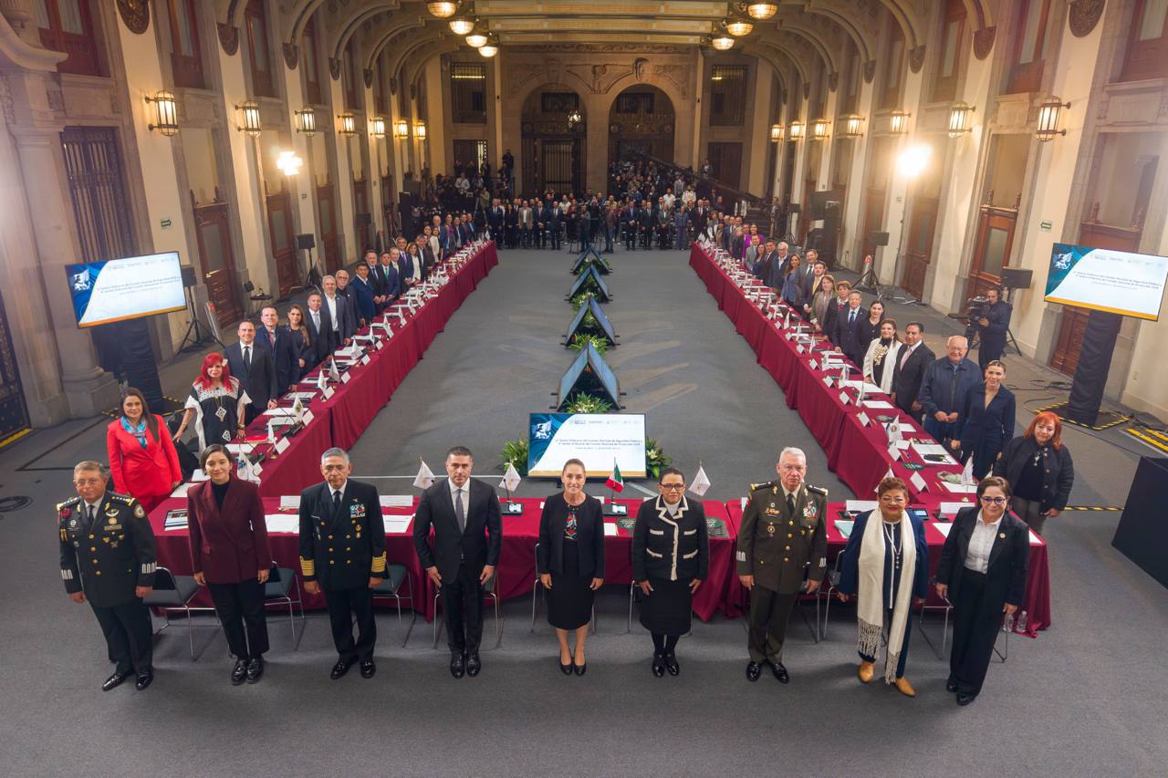 Durante la sesión, se presentó un balance de los primeros 14 meses del Gobierno de México, destacando avances significativos en materia de seguridad, donde estuvieron presentes las y los 32 gobernadores del país.