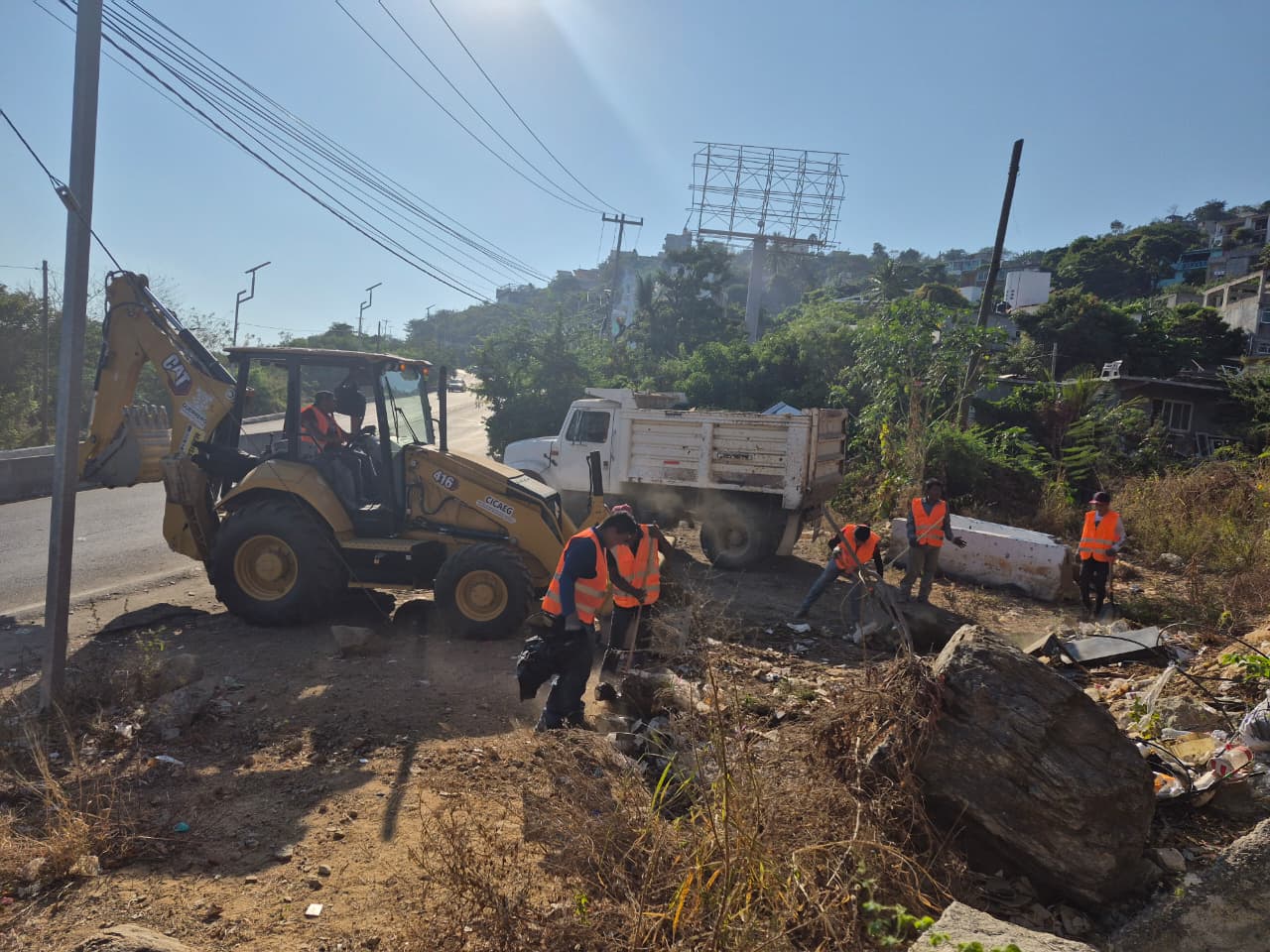 El director general de la CICAEG, Martín Vega González, informó que se desplegó maquinaria y una brigada de trabajadores para la realización de acciones de limpieza de cunetas, desmonte, retiro de basura y remoción de rocas a lo largo del trazo carretero.