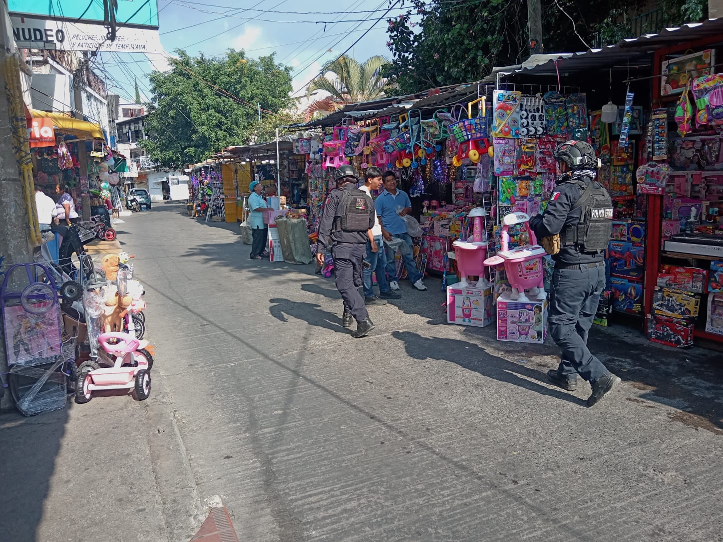 El despliegue de vigilancia cubre mercados, centros comerciales, tianguis, sucursales bancarias y cajeros automáticos.