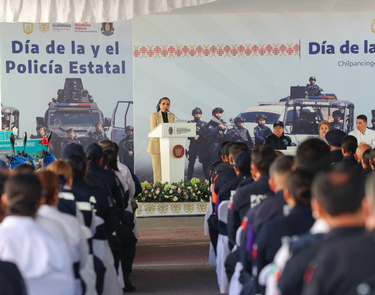 Evelyn Salgado reiteró que su administración mantiene una política de respeto, respaldo y dignificación del servicio policial, reconociendo a todas las coordinaciones operativas desplegadas en las ocho regiones del estado, así como a unidades especializadas como la Policía Violeta, Policía de Género, Fuerzas Especiales, Aeromóvil, Policía Rural, Unidad de Proximidad Social, Grupo Jaguar, Unidad de Reacción Inmediata, Policía Ecológica, Montada, Canina y Tránsito, entre otras.
