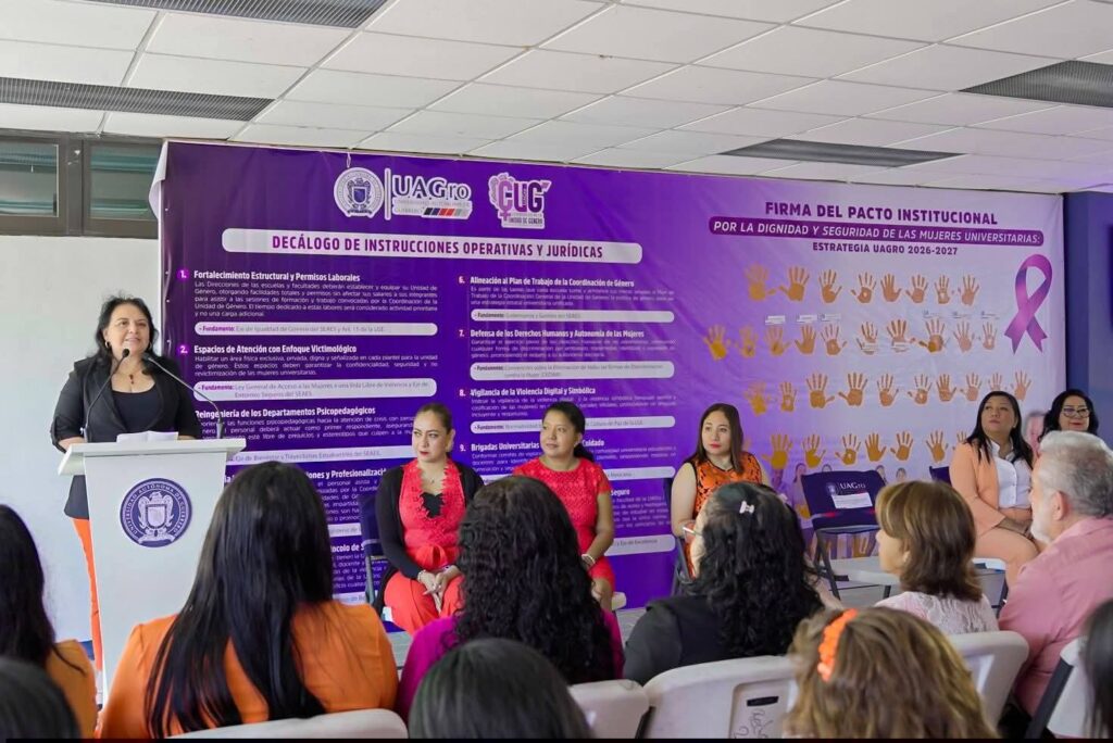 Chilpancingo, Gro., 27 de enero de 2026.- Como parte de la estrategia UAGro 2026-2027, se llevó a cabo la Firma del Pacto Institucional por la Dignidad y Seguridad de las Mujeres Universitarias,, reafirmando su compromiso con la igualdad sustantiva, la prevención de la violencia y la construcción de espacios universitarios seguros.