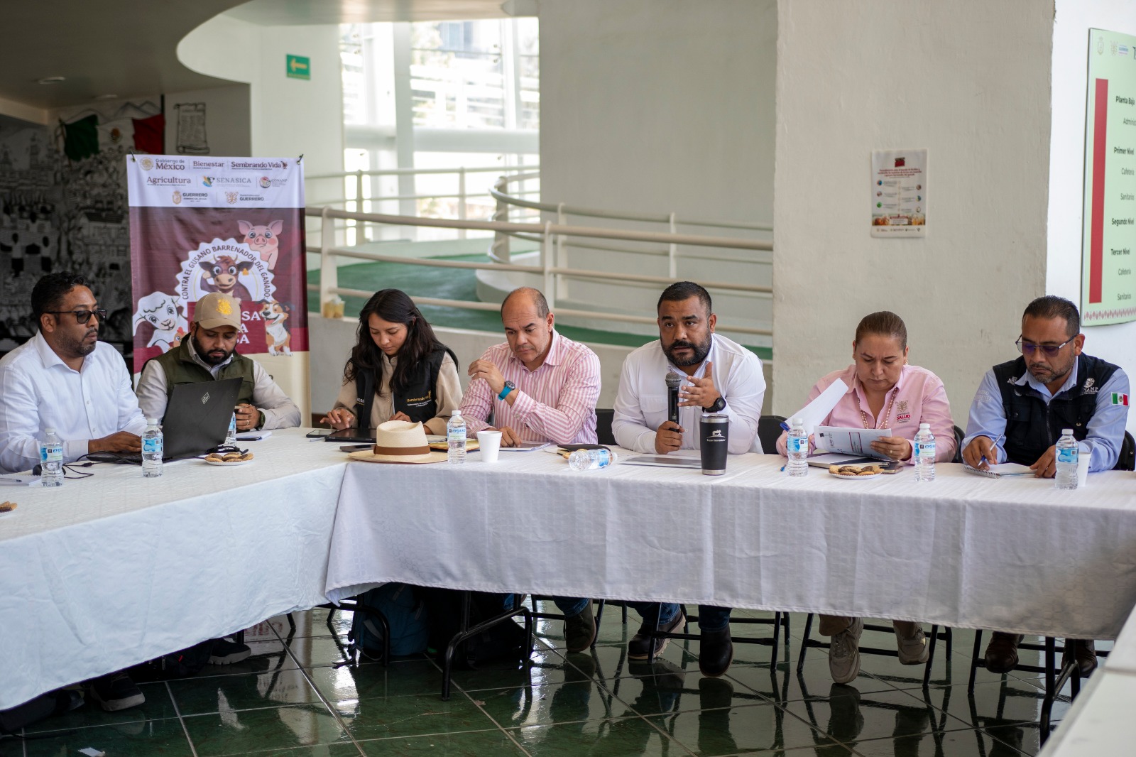 Chilpancingo, Gro., 11 de enero de 2026.- En representación de la gobernadora Evelyn Salgado Pineda, el secretario de Agricultura, Ganadería, Pesca y Desarrollo Rural, Alejandro Zepeda Castorena, encabezó una mesa de trabajo con funcionarios federales y estatales con la finalidad de sumar voluntades y coordinar acciones conjuntas para la prevención y el combate del gusano barrenador del ganado en la entidad.