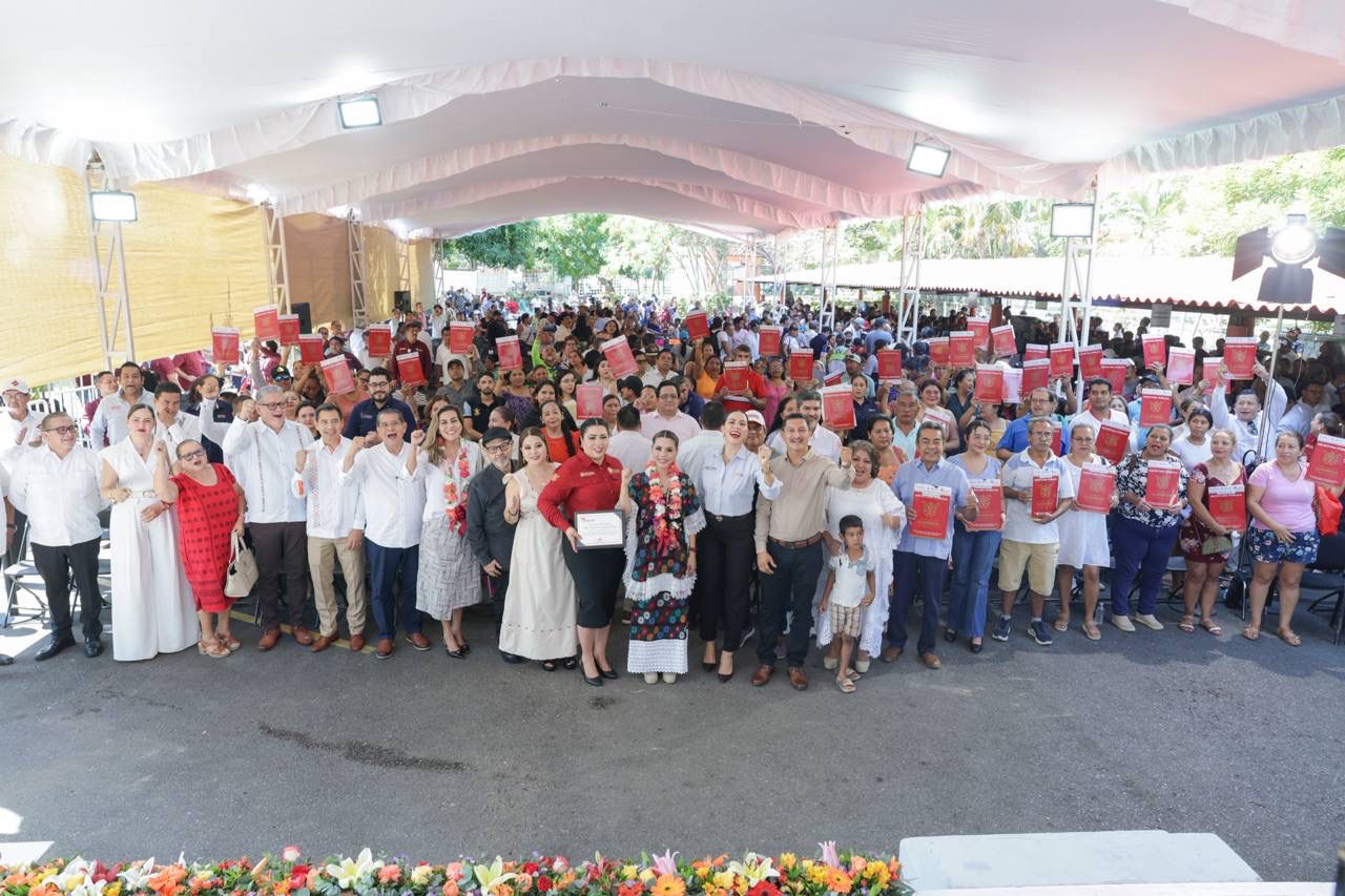 “Hoy me da mucho gusto poder acompañarlos para entregar más de 500 títulos de propiedad; tener una escritura nos da tranquilidad, nos da seguridad y nos da certeza jurídica. Esto es algo muy importante para todas las familias y sobre todo, para el cuidado de su patrimonio; cada uno de estos títulos son el reconocimiento de un esfuerzo de muchos años y de mucho sacrificio”, expresó la mandataria ante los beneficiarios.