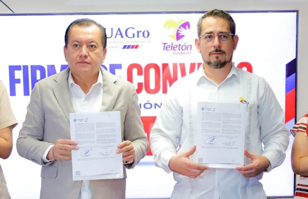Acapulco, Gro., 20 de febrero de 2026.- El rector de la Universidad Autónoma de Guerrero (UAGro), Javier Saldaña Almazán, firmó un convenio de colaboración con el director general del Centro de Rehabilitación e Inclusión Infantil Teletón (CRIT) Guerrero, Rogelio Vázquez Ríos, con el objetivo de fortalecer acciones conjuntas en favor de la inclusión social, la rehabilitación integral y el bienestar de niñas, niños y adolescentes con discapacidad en el estado.