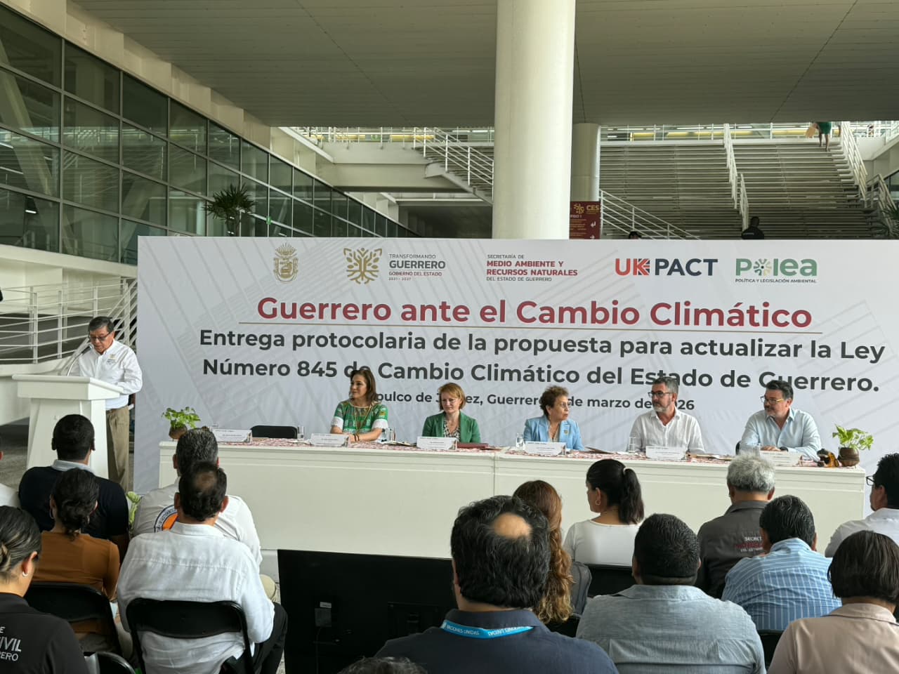 La presentación, la realizó el funcionario estatal en el evento “Guerrero ante el cambio climático: Entrega protocolaria de la Propuesta para Actualizar la Ley Número 845 de Cambio Climático del Estado”, realizado en las instalaciones del Edificio Inteligente de Acapulco, con el propósito de fortalecer las acciones institucionales frente al cambio climático y consolidar un marco jurídico más actualizado.